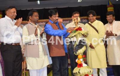 Photo Caption : TS Nagabharana, Chairman for Kannada Development Authority with Shivanand Herur, Pandit M Nagesh and others inaugurated the Dashamana Sangeethotsava program at Nayana, Kananda Bhavan, in Bengaluru on Saturday 29th February 2020