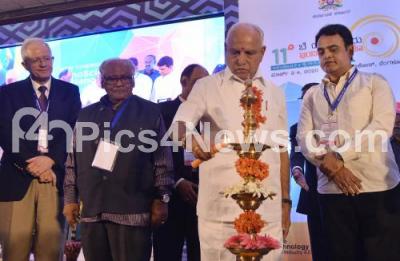 Photo Caption : CM BS Yediyurappa seen with DCM Aswath Narayan, Bharat Ratna Prof CNR Rao, Prof Roger Howe, Stanford University, USA and others inaugurated the Bengaluru India Nano Conference at Hotel Lalit Ashok, in Bengaluru on Monday 2nd March 2020