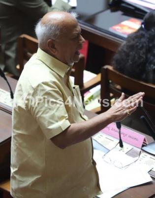 Photo Caption : Opposition Council leader SR Patil seen arguing during the Council Session at Vidhan Soudha, in Bengaluru on Monday 2nd March 2020