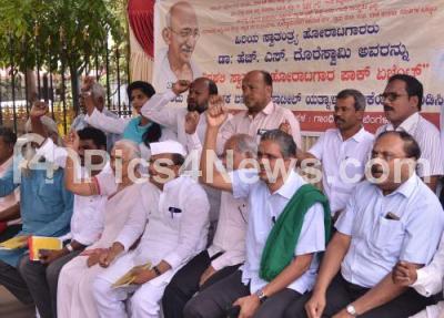 Photo Caption : Members of Gandhi Pratishtana, Karnataka Gandhi Smaraka Nidhi and others organisations led by MLA BR Patil, Lalitha Naik, Kodihalli Chandrashekhar and others staged a protest against Basanagouda Patil Yatnal BJP MLA from Vijayapura, for his remarks on HS Doreswamy, Freedom Fighter, the protest was held at Gandhi Statue, Anand Rao Circle, in Bengaluru on Monday 2nd March 2020