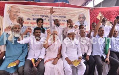 Photo Caption : Members of Gandhi Pratishtana, Karnataka Gandhi Smaraka Nidhi and others organisations led by MLA BR Patil, Lalitha Naik, Kodihalli Chandrashekhar and others staged a protest against Basanagouda Patil Yatnal BJP MLA from Vijayapura, for his remarks on HS Doreswamy, Freedom Fighter, the protest was held at Gandhi Statue, Anand Rao Circle, in Bengaluru on Monday 2nd March 2020