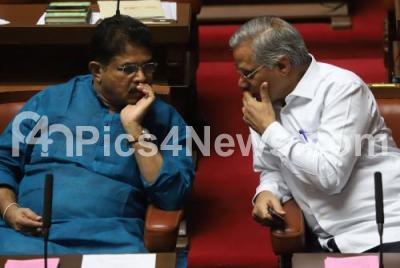 Photo Caption : Minister R Ashok seen with MLC Lehar Singh during the Council Session at Vidhan Soudha, in Bengaluru on Wednesday 4th March 2020