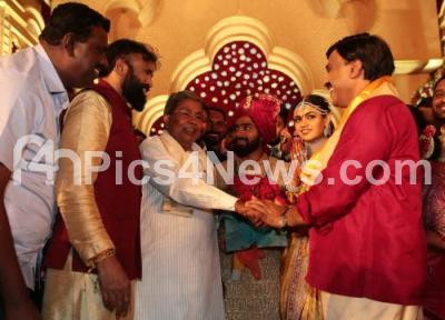 Photo Caption : Former CM Siddaramaiah seen greeting Former Minister Janardhana Reddy during the wedding celebrations of Sriramulu daughter Rakshita and Lalith Sanjeev Reddy at Palace Grounds, in Bengaluru on Thursday 5th March 2020