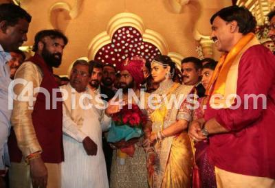Photo Caption : Former CM Siddaramaiah greeting Minister Sriramulu daughter Rakshita and Lalith Sanjeev Reddy on their wedding celebrations at Palace Grounds, also seen Former Minister Janardhana Reddy, in Bengaluru on Thursday 5th March 2020