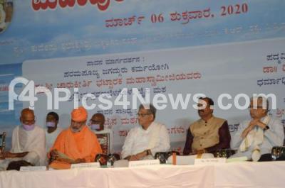 Photo Caption : Dr D Veerendra Heggade, Dharmadhikari Shree Kshetra, Dharmasthala with Prof Radhakrishna, Sri Charukeerti Bhattaraka Mahaswamiji of Srikshetra Shravanabelagola, Prof Mallepuram G Venkatesh, Dr Hampa Nagarajaiah and others inaugurated the Mahapurana (English) book release program at Kuvempu Kalakshetra, in Bengaluru on Friday 6th March 2020