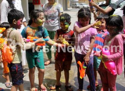 Photo Caption : Children seen playing with colors on the occasion of Holy festival, in Bengaluru on Tuesday 10th March 2020