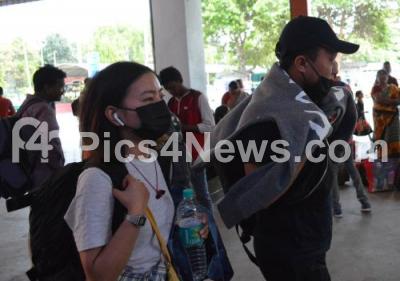 People arrive at Bengaluru City Railway Station wearing masks as a precautionary measure against Coronavirus, in Bengaluru on Wednesday 11th March 2020
