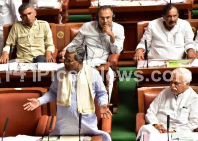 Photo Caption : Opposition leader Siddaramaiah addressing the Assembly Session at Vidhan Soudha, in Bengaluru on Thursday 12th March 2020