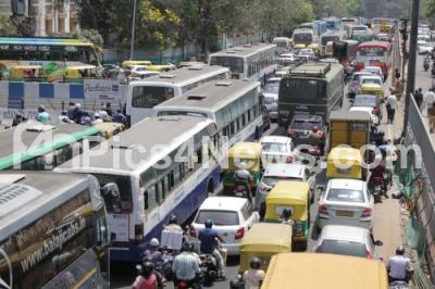 Photo Caption : Heavy traffic jam reported at Sheshadri Road, in Bengaluru on Thursday 12th March 2020