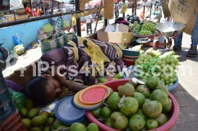 Photo Caption : Roadside fruit vendor is seen sleeping at KR Market, as temperature is getting hotter day by day, in Bengaluru on Tuesday 17th March 2020