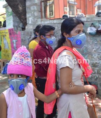 Event Description : People wearing protective masks for Coronavirus outbreak, in Bengaluru on Wednesday 18th March 2020