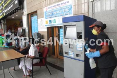 Photo Caption : Worker cleaning at Bengaluru City Railway Station for Coronavirus, in Bengaluru on Friday 20th March 2020
