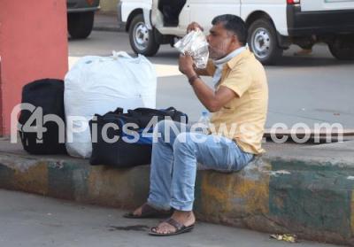 Photo Caption : Passengers stranded at BMTC bus stand, as people observe self imposed Janata Curfew amid rising Coronavirus cases, in Bengaluru on Sunday 22nd March 2020
