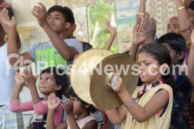 Photo Caption : Charitable trust children clapping together at 5 pm to pay gratitude to doctors, nurses, airport staff other colunteers fighting the Coronavirus pandemic on “Janata Curfew†, in Bengaluru on Sunday 22nd March 2020