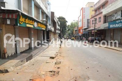 Photo Caption : Deserted look at Malleshwaram as the shops were shutdown, amid rising Coronavirus cases, in Bengaluru on Monday 23rd March 2020