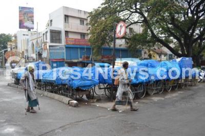 Photo Caption : Pushcarts are out of business at Shivajinagar after lock down called by Karnataka Government amid rising Coronavirus cases, in Bengaluru on Monday 23rd March 2020