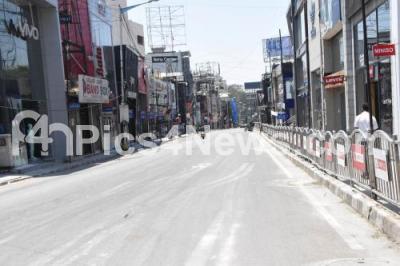 Photo Caption : Busy Brigade road wears a deserted look during a nationwide lockdown in the wake of novel coronavirus (COVID 19) pandemic, in Bengaluru on Saturday 4th April 2020