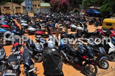 Photo Caption : Seized vehicles by the police from the people who were moving around the Bangalore City during the nationwide lock down imposed on the wake of Coronavirus pandemic, being kept in a field at Mahalakshmi Layout, in Bengaluru on Sunday 5th April 2020