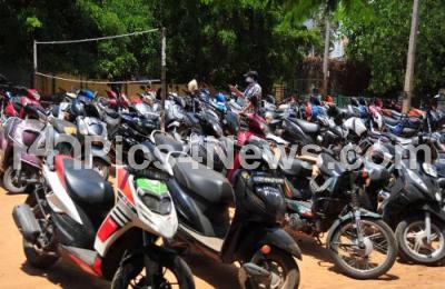 Seized vehicles by the police from the people who were moving around the Bangalore City during the nationwide lock down imposed on the wake of Coronavirus pandemic, being kept in a field at Mahalakshmi Layout, in Bengaluru on Sunday 5th April 2020