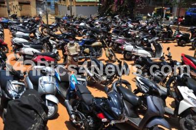 Photo Caption : Seized vehicles by the police from the people who were moving around the Bangalore City during the nationwide lock down imposed on the wake of Coronavirus pandemic, being kept in a field at Mahalakshmi Layout, in Bengaluru on Sunday 5th April 2020