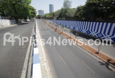 Photo Caption : Busy Mekhri Circle road wears a deserted look during the nationwide lockdown in the wake of novel coronavirus (COVID 19) pandemic, in Bengaluru on Monday 6th April 2020
