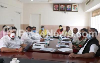 Photo Caption : KPCC Designated President with Congress Leaders and KPCC Covid 19 task force members Ramesh Kumar, Saleem Ahamed, Priyanka Kharge, Sowmya Reddy, Narayan Swamy and others during a meeting at KPCC, in Bengaluru on Monday 6th April 2020