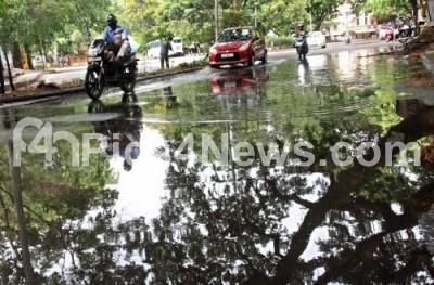 Photo Caption : Rain water logged at Ulsoor Road, in Bengaluru on Tuesday 7th April 2020