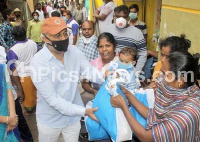 Photo Caption : MLA Dinesh Gundu Rao distributing food grains to Gandhinagar ward people during the nationwide lockdown in the wake of novel coronavirus (COVID 19) pandemic, in Bengaluru on Tuesday 7th April 2020