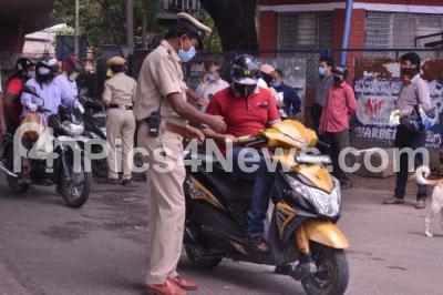 Event Description : Police check post during the nationwide lock down imposed on the wake of Coronavirus pandemic, in Bengaluru on Tuesday 7th April 2020