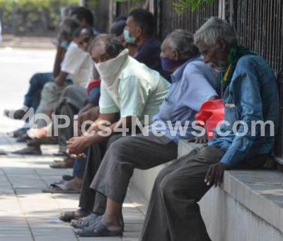 Photo Caption : Homeless and jobless people seen resting near BBMP head office during the nationwide lockdown in the wake of novel coronavirus (COVID 19) pandemic, in Bengaluru on Wednesday 8th April 2020