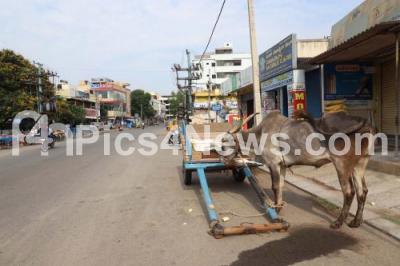 Photo Caption : Cattle cart seen parked on Ullal Main Road during the nationwide lockdown in the wake of novel coronavirus (COVID 19) pandemic, in Bengaluru on Thursday 9th April 2020
