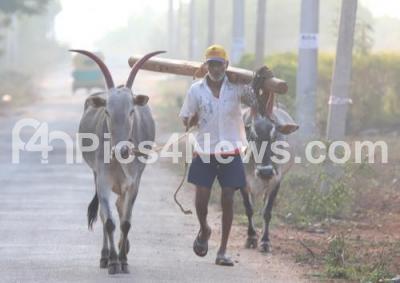 A farmer herds his cattle at Ramasandra Village during the nationwide lockdown in the wake of novel coronavirus (COVID 19) pandemic, in Bengaluru on Saturday 11th April 2020