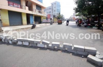 Photo Caption : Ullal main road closed during the nationwide lockdown in the wake of novel coronavirus (COVID 19) pandemic, in Bengaluru on Sunday 12th April 2020