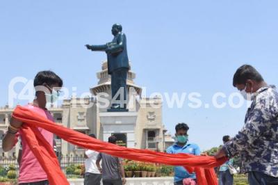 Photo Caption : Preparation for the Dr BR Ambedkar Jayanti celebrations at Vidhana Soudha, in Bengaluru on Monday 13th April 2020