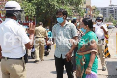 Event Description : Police check post at Nagarabhavi circle during the nationwide lockdown in the wake of novel coronavirus (COVID 19) pandemic, in Bengaluru on Monday 13th April 2020