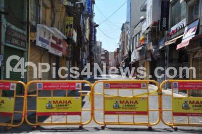 Photo Caption : Busy Chickpet road wears a deserted look during the nationwide lockdown in the wake of novel coronavirus (COVID 19) pandemic, in Bengaluru on Tuesday 14th April 2020
