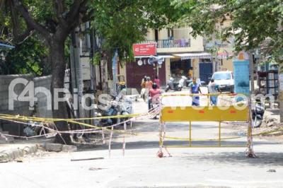Photo Caption : Kengeri ward road entrance being closed during the nationwide lockdown in the wake of novel coronavirus (COVID 19) pandemic, in Bengaluru on Wednesday 15th April 2020