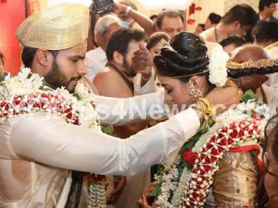 Photo Caption : Nikhil Kumarswamy and Revathi seen during their wedding ceremony at Ramanagar on Friday 17th April 2020