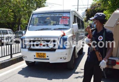 Tight security after tension gripped in Padarayanapura locality after a gang of miscreants allegedly stormed a check - post and pulled it down completely besides destroying the barricades that were put up to seal the area as part of COVID 19 containment measures, in Bengaluru on Monday 20th April 2020