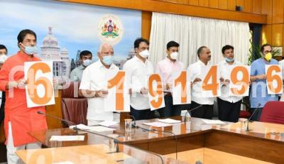Photo Caption : Chief Minister BS Yediyurappa launching the home delivery helpline number in BBMP areas with DCM Dr Ashwath Narayan, Minister R Ashoka, Mayor Goutham Kumar, MPs PC Mohan, Tejasvi Surya and others, in Bengaluru on Tuesday 21st April 2020