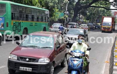 Photo Caption : Vehicles seen as usual at JC road , during the nationwide lockdown in the wake of novel coronavirus (COVID 19) pandemic, in Bengaluru on Wednesday 22nd April 2020