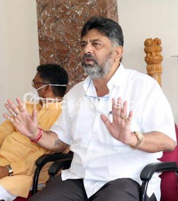 KPCC Designated President DK Shivakumar addressing media with Congress leaders at his residence, in Bengaluru on Friday 24th April 2020