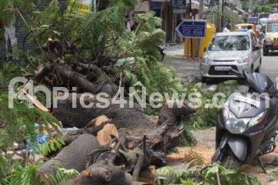 Photo Caption : A tree uprooted at Manjunath Nagar due to heavy wind and rain in the city, in Bengaluru on Friday 24th April 2020