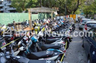 Seized vehicles by the police from the people who were moving around the Bangalore City unnecessarily were parked at Ashoknagar Police Station, during the nationwide lock down imposed on the wake of Coronavirus pandemic, in Bengaluru on Friday 24th April 2020