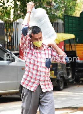 Photo Caption : A man carrying water can at Adugodi during the nationwide lockdown in the wake of novel coronavirus (COVID 19) pandemic, in Bengaluru on Sunday 26th April 2020