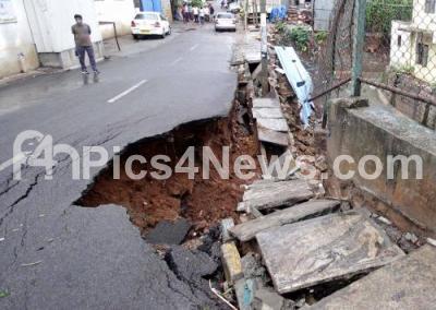 Road Caved in after Heavy Rains Lashed Bangalore City