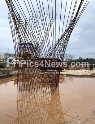 Photo Caption : Rain waterlogged on a construction site at 6 lane highway project at Mysuru Road after heavy rains lashed Bengaluru City on Wednesday 29th April 2020