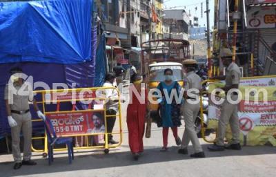Photo Caption : Police checkpoint at coronavirus hot spot zone at Hosa Guddadahalli during coronavirus lockdown, in Bengaluru on Thursday 30th April 2020