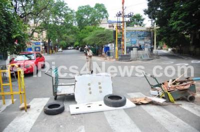 Busy Rajaji Nagar road wears a deserted look during the nationwide lockdown in the wake of novel coronavirus (COVID 19) pandemic, in Bengaluru on Thursday 30th April 2020