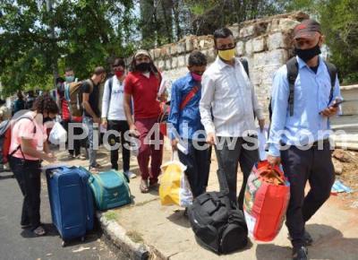Stranded people of Himachal Pradesh seen at Palace Grounds for registration and wait to board buses to a special train for native homes during the coronavirus lockdown, in Bengaluru on Monday 11th May 2020